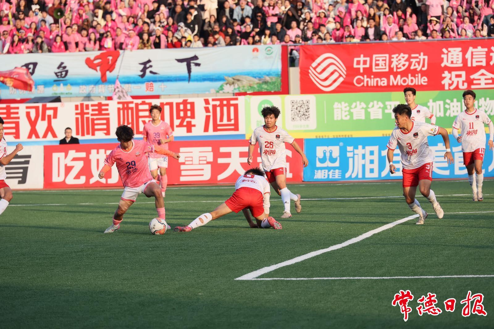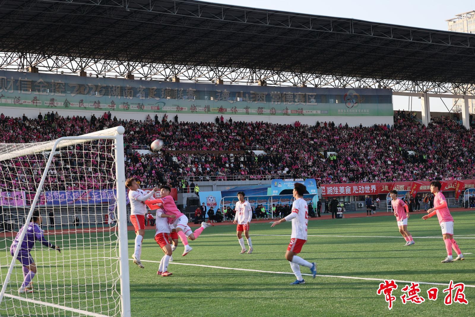 12月14日下午三时,”湘超”联赛淘汰赛展开激烈角逐,常德队坐镇主场迎战衡阳队。经过90分钟的高强度拼抢,常德队凭借29号袁晖凯第83分钟的制胜进球,以1:0的比分击败对手,成功挺进四强。