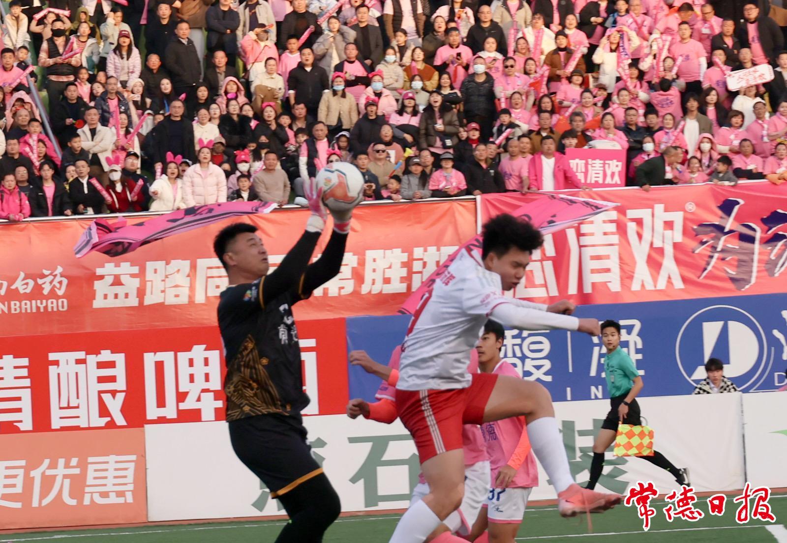 落后的衡阳队随即发起猛烈反扑,下半场最后10分钟,球队攻势一波接着一波,连续向常德队球门制造威胁。常德队门将王峰琦发挥老将实力,最后十分钟,他先后几次扑出对手的威胁射门,力保球门不失。